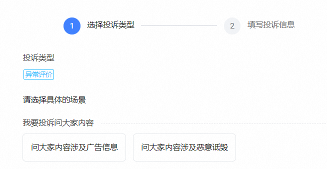 投诉入口2:营商保-恶意行为投诉-异常评价-问大家