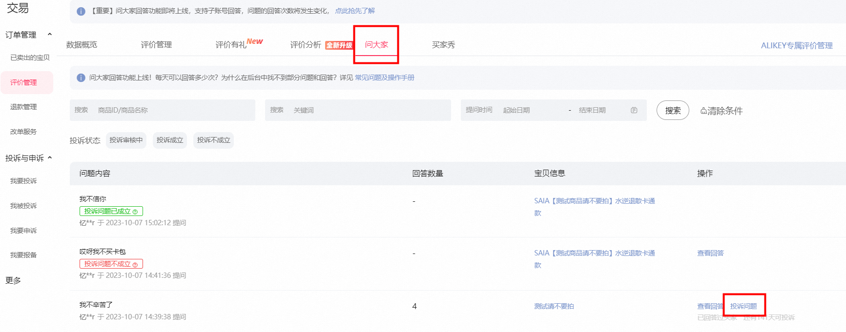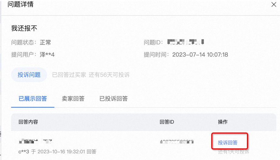 注意:商家需正确区分要投诉的是提问还是回答(若投诉对象弄错将导致投诉结果不过)
