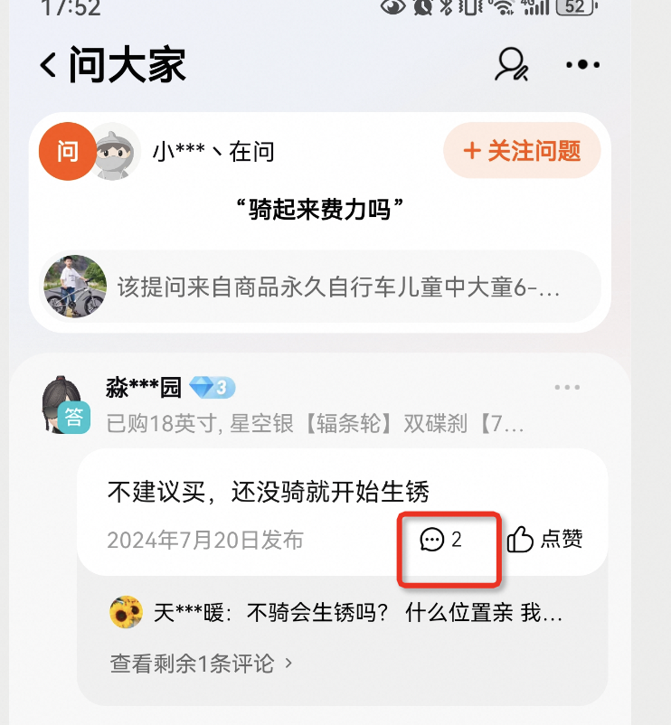 评价管理页面的问大家列表页与手淘端的问大家展示基本保持一致,评价管理页面的问大家列表页相比手淘端问大家的更新存在一定滞后,建议关注1-2天。