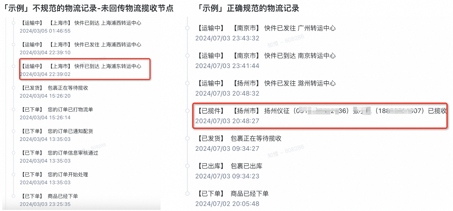 1、揽收及时率统计的是【从买家支付时间 至 物流回传“已揽收”节点的时间】,若物流公司取件但未上传【已揽收】节点记录,也会记为未揽收,影响揽收及时率的考核。建议您查看物流走件信息,是否有揽收的节点,同时揽收时间是否在应揽收时间内,若物流公司未回传【已揽收】节点记录,建议您联系快递公司投诉规范回传信息,或者更换其他更优质的快递公司,避免出现该类问题,7月24号开始未规范回传揽收信息的,不再支持申诉,同时平台也会积极和各个快递公司对接督促快递规范回传信息