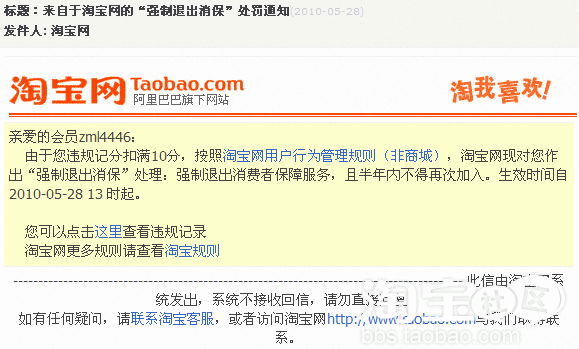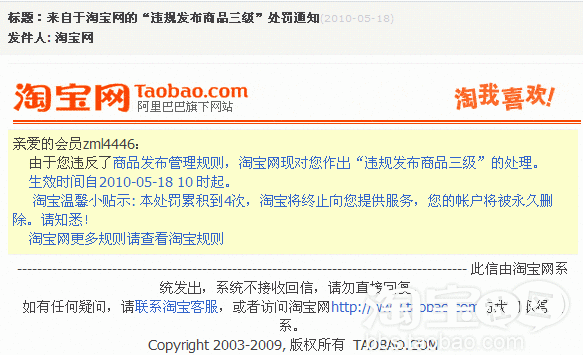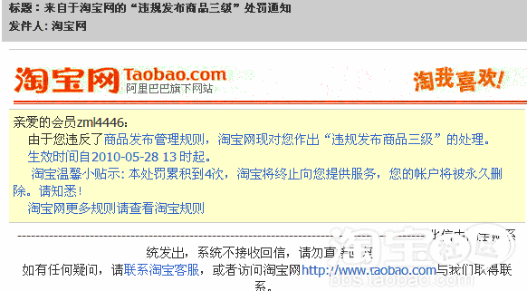 | 标题:关于您发布的宝贝被删除的通知(2010-05-18)