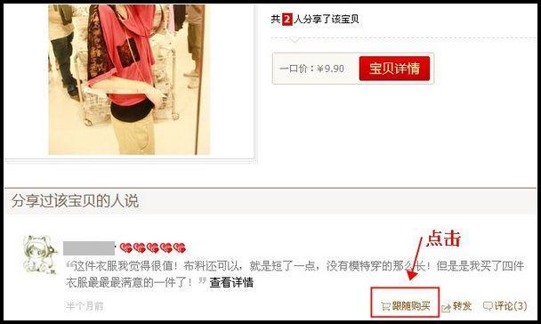 注:若该宝贝卖家有设置了分享价,那么您点击“跟随购买”将可以享受到分享价。
