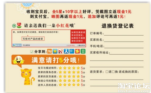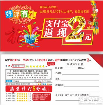1、全5分返现、好评返现、好评返红包、好评返优惠券等引导好评的类似内容;