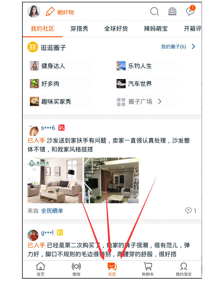 而手淘社区做为无线端重要的引流渠道,只能买家去发帖和晒好物,看似和我们商家没有关系,但是却有着很大的关系的,当一个买家把你的商品晒出只要产品够真实就可以获得大量流量进来浏览和成交,当然我们如果要发社区必须要让买家晒好物,其根本就是我们的产品好才可以。