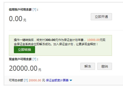 (二). 随着经营情况的改善,部分卖家的后台页面会出现保证金信用账户。保证金账户的含义是,符合“淘宝保险”旗下“保证金计划”的资质要求的卖家将会得到以保险费用抵用保证金的特殊支持,您可以以极低的保险成本支出,换取1000~20000元不等的保证金额度。