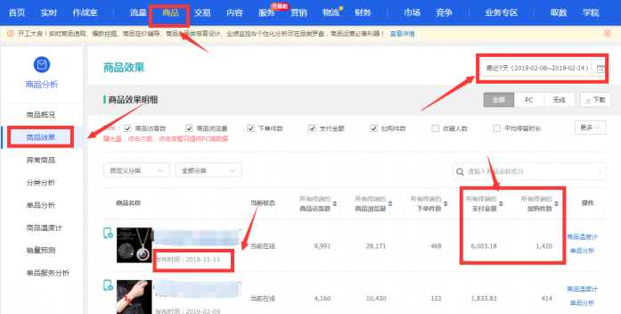 - 如果产品能够同时满足以上三个条件,这种产品是需要删除的。这些条件具体在哪里查看呢?(查看入口:生意参谋---品类—返回旧版---商品----商品效果-----日期选择最近7天)