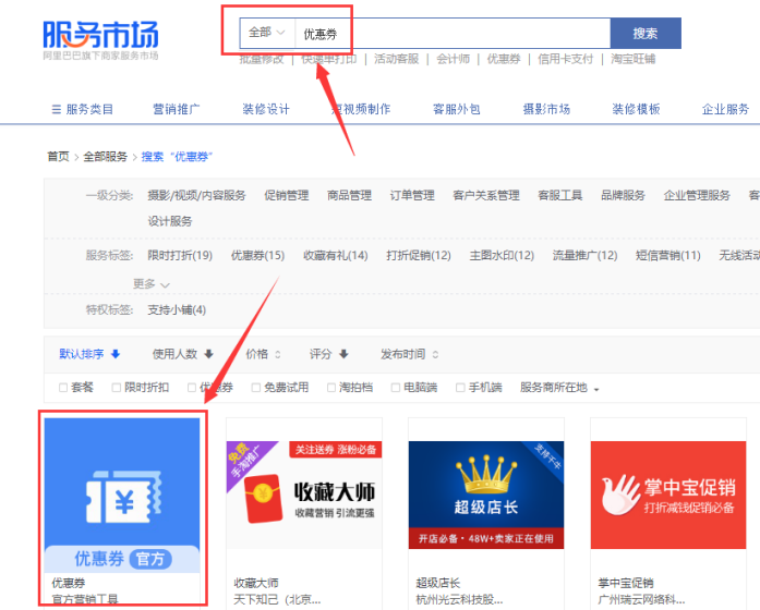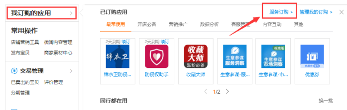 - 设置优惠券或者店铺满减活动,卖家中心 – 我订购的应用 - 服务订购
